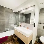 Das Large 2 Bedrooms Flat With Terrace And Oarking verfügt über einen Patio und eine Essecke, die mit einem Sofa und einem Schreibtisch ausgestattet sind. Die Medienausstattung im Zimmer umfasst ein Flachbildfernseher mit Satellitenkanälen. Gästen werden 2 Badezimmer sowie eine getrennte Toilette, eine Badewanne und eine Dusche angeboten. Darüber hinaus gibt es im Badezimmer einen Haartrockner, Toilettenartikel und Badelaken.