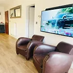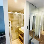 Large 2 Bedrooms Flat With Terrace And Oarking bestaat uit een patio en is voorzien van een bank en een bureau, evenals moderne voorzieningen zoals een TV en een flatscreen TV met satellietzenders. Deze accommodatie heeft een apart toilet, een badkuip en een douche voor uw comfort. Verder beschikt de badkamer over een haardroger, toiletartikelen voor gasten en badlakens.